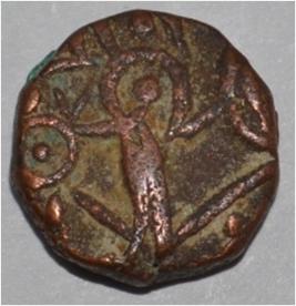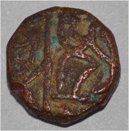 Obverse Horseman on the top holding penon. Reverse Couchant bull facing right and traces of legend on the top.