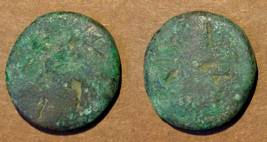 | Description / विवरण | Descrpn./Obv Stylised seated Goddess facing (Details and legend rubbed off/ worn out). Descrpn./Rev Stylised standing king design (Details and legend rubbed off/ worn out) |