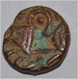Obverse Horseman on the top. Reverse Couchant bull facing right and hump on the top.