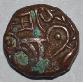 Obverse Horseman to the left. Man on the horseback and flagpole at the back of horse. Reverse Couchant bull facing right and traces of legend on the top.