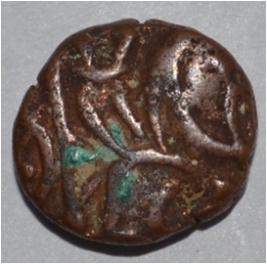 Obverse Horseman to the left. Man on the horseback and flagpole at the back of horse. Reverse Couchant bull facing right and hump on the top.