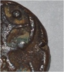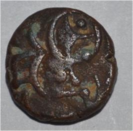 Obverse Horseman on the top holding penon. Reverse Couchant bull hump at the bottom and traces of legend on the top.