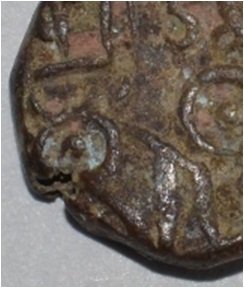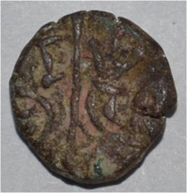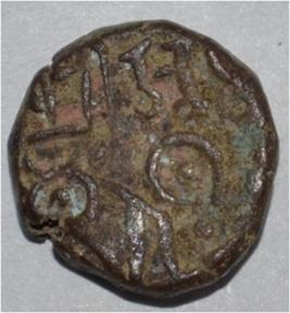 Obverse Horseman to the left. Man on the horseback and flagpole at the back of horse. Reverse Couchant bull facing right and traces of legend on the top.
