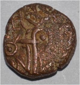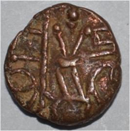 Obverse Horseman to the left. Man on the horseback and flagpole at the back of horse. Reverse Couchant bull facing right and traces of legend on the top.