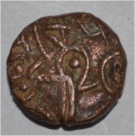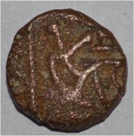 Obverse Horseman on the top holding penon. Reverse Couchant bull facing right and traces of legend on the top.