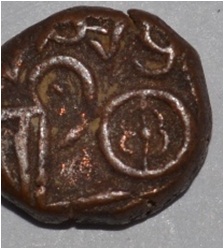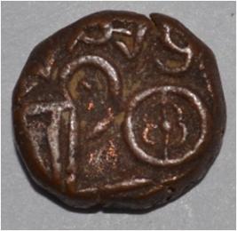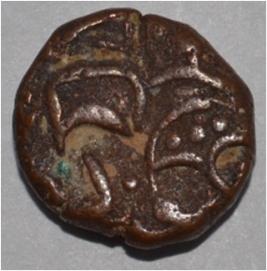 Obverse Horseman to the left. Man on the horseback and flagpole at the back of horse. Reverse Couchant bull facing right and traces of legend on the top.