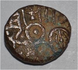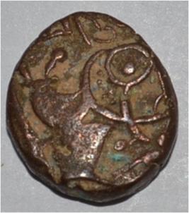 Obverse Horseman to the left. Man on the horseback and flagpole at the back of horse. Reverse Couchant bull facing right and traces of legend on the top.