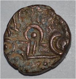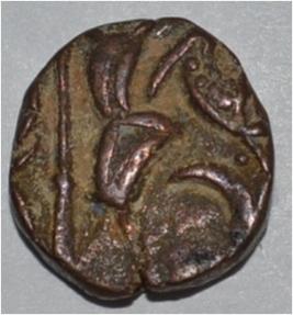 Obverse Horseman to the left. Man on the horseback and flagpole at the back of horse. Reverse Couchant bull facing right and traces of legend on the top.