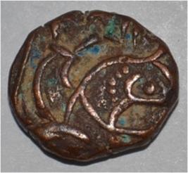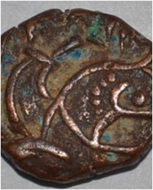 Obverse Horseman to the left. Man on the horseback and flagpole at the back of horse. Reverse Couchant bull facing right and traces of legend on the top.