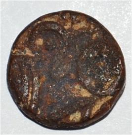 Obverse Horseman to the left. Man on the horseback and flagpole at the back of horse. Reverse Couchant bull facing right and hump on the top.