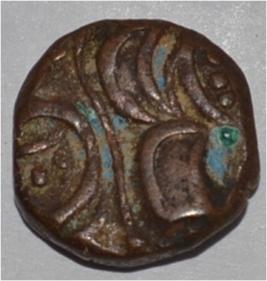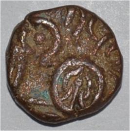 Obverse Horseman to the left. Man on the horseback and flagpole at the back of horse. Reverse Couchant bull facing right and traces of legend on the top.