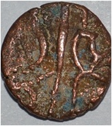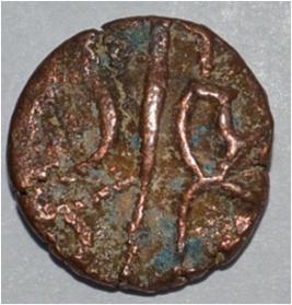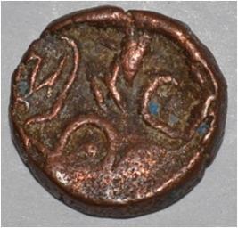 Obverse Horseman to the left. Man on the horseback and flagpole at the back of horse. Reverse Couchant bull hump at the bottom and traces of legend on the top.