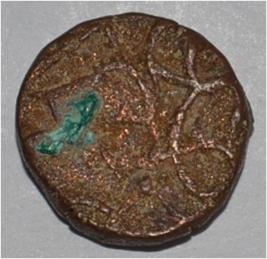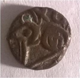 Obverse Horseman to the left. Man on the horseback and flagpole at the back of horse. Reverse Couchant bull facing right and traces of legend on the top.