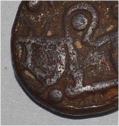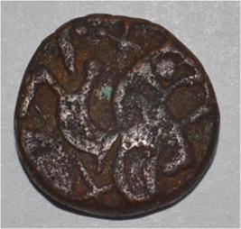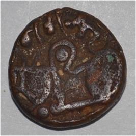Obverse Horseman to the left. Man on the horseback and flagpole at the back of horse. Reverse Couchant bull facing right and traces of legend on the top.