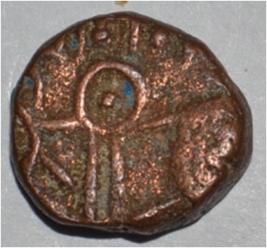 Obverse Horseman to the left. Man on the horseback on the top. Reverse Couchant bull facing right and traces of legend on the top.