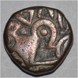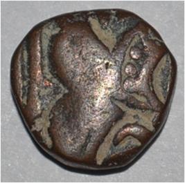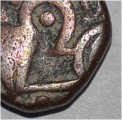 Obverse Horseman to the left. Man on the horseback and flagpole at the back of horse. Reverse Couchant bull facing right and traces of legend on the top.
