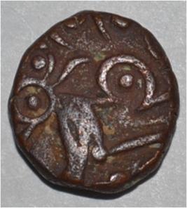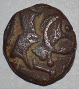 Obverse Horseman to the left. Man on the horseback and flagpole at the back of horse. Reverse Couchant bull facing right and traces of legend on the top.