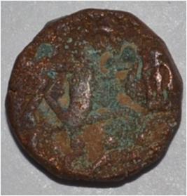 Obverse Horseman to the left. Man on the horseback and flagpole at the back of horse. Reverse Couchant bull facing right and hump on the top.