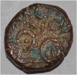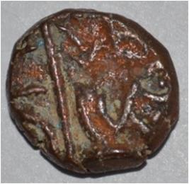 Obverse Horseman to the left. Man on the horseback and flagpole at the back of horse. Reverse Couchant bull facing right and traces of legend on the top.