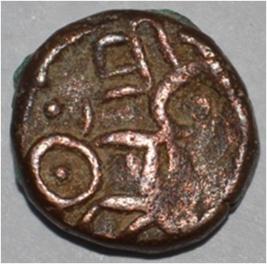 Obverse Horseman to the left. Man on the horseback and flagpole at the back of horse. Reverse Couchant bull facing right and traces of legend on the top.