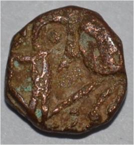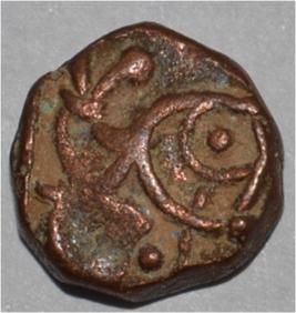Obverse Horseman to the left. Man on the horseback and flagpole at the back of horse. Reverse Couchant bull facing right and hump on the top.