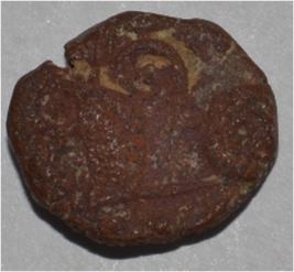 Obverse Horseman to the left. Man on the horseback and flagpole at the back of horse. Reverse Couchant bull facing right and hump on the top.