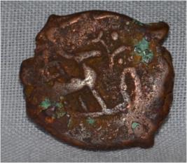 Obverse Deer on the left and facing female figure at centre and brahmi legend on the top. Reverse In right triangle headed with a base,Six arched hill at the centre, tree in railing on the left and swastika symbol on the top.