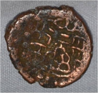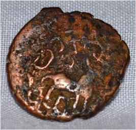 Obverse Deer at the bottom and brahmi legend around. Reverse In rightt triangle headed with a base, seven arched hill with umbrella at the centre, tree in railing on the left, swastika and triratna on the top.