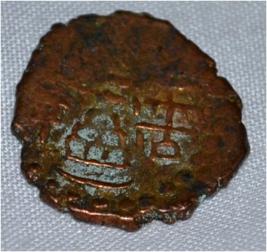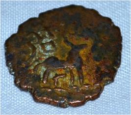 Irregular shape. Obverse Deer at the bottom facing the left and brahmi legend on top right. Reverse Triangle headed with a base in right, six arched hill with umbrella at the centre and tree in railing on the left.