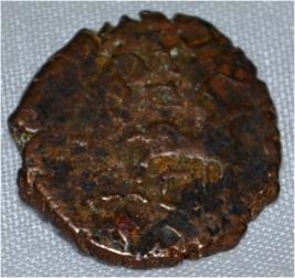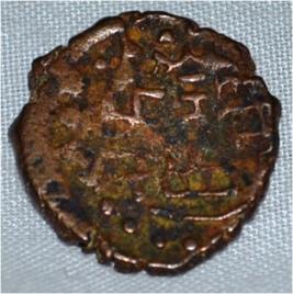 Obverse Deer at the centre and brahmi legend around it. Reverse Triangle headed with a base in right and swastika above it, six arched hill with umbrella at the centre, tree in railing on the left and nandi pada on the top.
