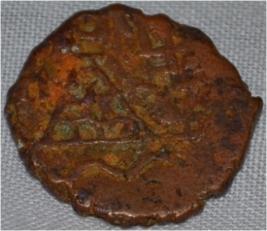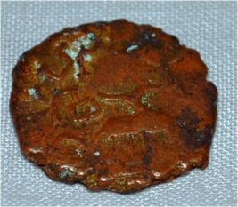 Coin in irregular shape. Obverse Deer at the bottom facing left and brahmi legend above it. Reverse Ten arched hill with umbrella on the right and swastika on the top left.