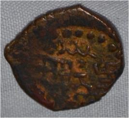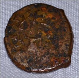 Coin in irregular shape. Obverse Deer at the bottom and brahmi legend above it. Reverse Tree in railing on the right, arched hill at the centre and swastika on the left and nandi pada on the top.
