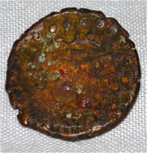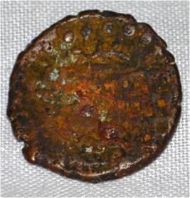 Coin in irregular shape. Obverse Only legs of the deer and female figure are visble at the centre. Reverse Tree in railing showing three horizontal branches in left and nandi pada on the top.