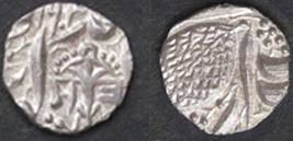 | Description / विवरण | Descrpn./Obv In the centre, a chhatra with Sa and Ta in Gurumukhi script on the left and right of its shaft; traces of the Persian legend seen on the obverse of the bigger Nanakshahi coins of Amritsar mint are also seen. Descrpn./Rev Big peepal leaf and traces of the Persian legend seen on the reverse of the bigger Nanakshahi coins of Amiritsar mint - Shri Amritsarjiv zarb [VS Year] Takht maimanat julus manus Akal Bakht. Especially traces of alif of Akal and te of Takht and maimanat are seen |