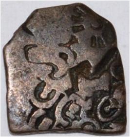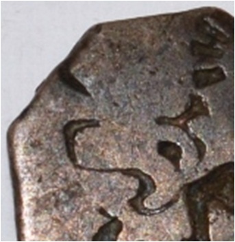 Obverse Jumbled symbols and indistinct. Sun on the top left. The coin seems to be re-struck Reverse Five minute marks.