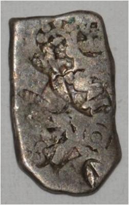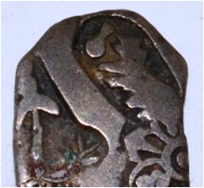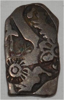 Obverse Five symbols are shown. Sun and flower are at the lower portion. Three unidentified symbols. Reverse Jumbled indistinct.