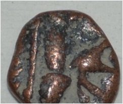 Obverse Horseman to the left. Man on the horseback and flagpole at the back of horse. Reverse Traces of legend.