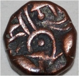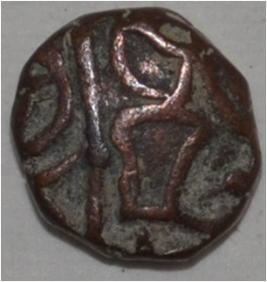 Obverse Horseman to the left. Man on the horseback and flagpole at the back of horse. Reverse Couchant bull facing right and traces of legend on the top.