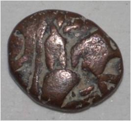 Obverse Horseman to the left. Man on the horseback and flagpole at the back of horse. Reverse Traces of legend.