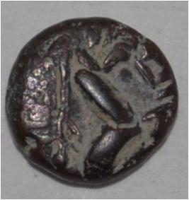 Obverse Horseman to the left. Man on the horseback and flagpole at the back of horse. Reverse Traces of legend.