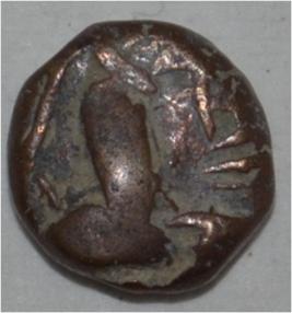 Obverse Horseman to the left. Man on the horseback and flagpole at the back of horse. Reverse Traces of legend.