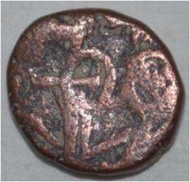 Obverse Horseman to the left. Man on the horseback and flagpole at the back of horse. Reverse Couchant bull facing right and hump on the top.