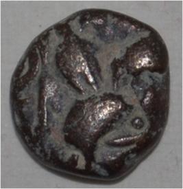 Obverse Horseman to the left. Man on the horseback and flagpole at the back of horse. Reverse Traces of legend.