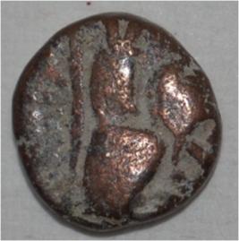 Obverse Horseman to the left. Man on the horseback and flagpole at the back of horse. Reverse Traces of legend.