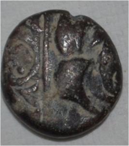 Obverse Horseman to the left. Man on the horseback and flagpole at the back of horse. Reverse Traces of legend.