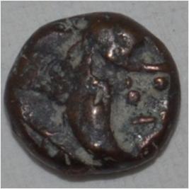 Obverse Horseman to the left. Man on the horseback and flagpole at the back. Reverse Traces of Megha at the centre.