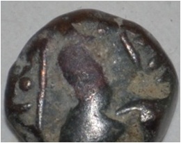 Obverse Horseman to the left. Man on the horseback and flagpole at the back of horse. Reverse Traces of Megha .