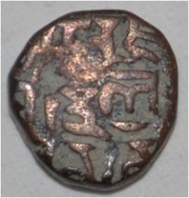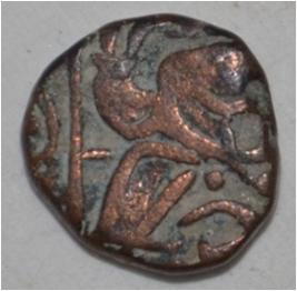 Obverse Horseman to the left. Man on the horseback and flagpole at the back of horse. Reverse Traces of Maharaja Trilok .