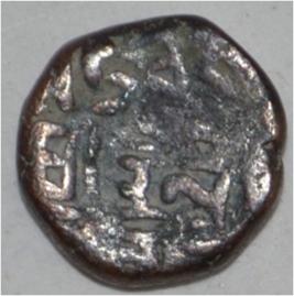 Obverse Horseman to the left. Man on the horseback and flagpole at the back of horse. Reverse Traces of Sri Trilok .