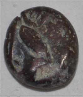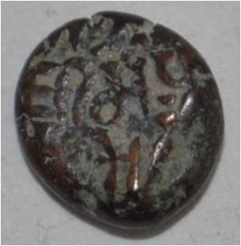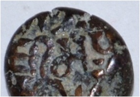 Obverse Horseman to the left. Man on the horseback and flagpole at the back of horse. Reverse Traces of Sri Megha .